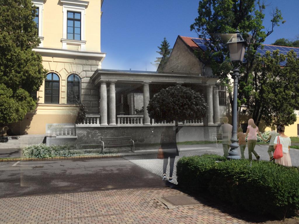 Az 1938-39-ben épült zenepavilon a jelenlegi Református Gimnázium – eredetileg Gazdasági Akadémia – és a mostani Püspöki hivatal közé ékelődött. A tervek szerint – túl az alapvető funkcióján – a Református Kollégium emeletén létrehozott Néprajzi kiállítás egy közbenső állomáspontja, az odavezető lépcső kiindulásaként terveződött. Jellemzően nyitott, oszloprendekkel határolt tömege erősen archaizáló külsőt kölcsönöz. Ezen arányrendszerbe csupán a ballaszteres korlátsor teremt disszonanciát, mely mára csak nyomokban található meg az épületen. Így azonban – a ballaszteres korlátok nélkül – talán még erősebben tetten érhető az oszlopok karcsúbb, szebb aránya. Az idők során a kiállításhoz készült lépcsőépítmény eltűnt és az iskola udvara felőli homlokzat tömören lezáródott. Megszűnt a transzparencia, légiesség, az átfúvó szél, de talán legfontosabb, hogy megszűnt a Füvészkert utca és a Déri tér közötti vizuális kapcsolat. A zenepavilon épületek közé ékelődött zsákként védtelenül kénytelen tűrni az idő és a jogtalan használók – elhasználók kártékony tetteit. Elsődleges feladat tehát a védelem. Valójában az épület igazi, hosszú távú védelme a revitalizációján keresztül érhető el teljes mértékben. Az épület megfelelő funkcióját megtalálva annak megfelelően kialakítani lehatárolását, védelmét, feltárását… Talán a többcélú használhatóság, a több funkcióra való alkalmasság tehetné igazán életképessé. Javaslatunk szerint maga az eredeti funkció, a zenepavilon, valamint a Református Kollégium és a Déri Múzeum vonzásköre indokolta kiállítótér méltó helyszíne lehetne az épület. Ezek a hasznosítások azonban más megközelítést kívánnak a védelem szempontjából. Ezek a funkciók jól beilleszthetők az épület múltjába és alkalmazkodnak jelenéhez, elfoglalt helyéhez, és az épület eszmei jelentőségéhez. Az oszlopok között-mögött elhelyezett teljes magasságú biztonsági üvegtáblák lehetőséget adnak az épület védelmének, betekintést engednek, meghagyják az architektúráját és vizuális kapcsolatot teremtenek a Fűvészkert utca és a Déri tér között. Mindezekkel a tulajdonságokkal próbálna az épület az 1930-as évek végén létező érzékeny kapcsolatokra utalni. Amellett, hogy az üvegtáblák teljes mértékben eltolhatók így szinte színpaddá, előadótérré alakulhat újra, megoldható a használaton kívüli vagyonvédelem. A tér (épületbelső) teljes mértékben alkalmas továbbá időszakos kiállítások és az azokhoz kapcsolódó előadások lebonyolítására. Éjszakai megvilágítással az üvegfelületeken keresztül impozáns helyszínt adhatna például a Múzeumok Éjszakája egyik helyszínének. A kisebb zenei előadások esetén az üvegtáblák eltolásával zenekari színpaddá alakul. Ebben az esetben érdekes kapcsolat alakulhat ki a Déri térrel. Fontosnak érezzük, hogy a pavilon és annak néző-hallgató tere szervesen kapcsolódjon a Déri tér szövetébe, finom geometriai rendszerébe. A mellékelt rajzok alapján a épülettel szembeni „sövény-karéjt” megtükrözve, az ágyást igényes kőburkolattal ellátva egy olyan térbővület jön létre, mely szervesen kapcsolódik a zenepavilonhoz, arra fókuszál és egyben szervesen kapcsolja a tér szövetébe, rendszerébe. Itt kaphatna helyet mobil padokon a hallgatóság, akár az utca felületébe is benyúlva - persze ez időszakos lezárást jelent. Javaslatunk és hitünk szerint az épület puszta lezárása, lehatárolása csak kis mértékben gátolja az enyészetet, ezekkel a továbbgondolásokkal viszont a város egy fontos helyén méltatlan körülmények között várakozó gyöngyszeme kaphatna új vitalitást és ezzel tovább bővülhetne a város érdemes „zarándokpontjainak” száma.